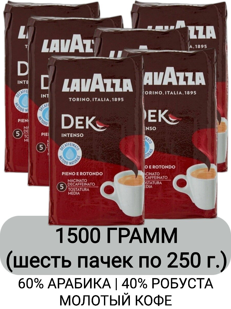 Кофе молотый Lavazza Dek Intenso, 250г x 6шт информация: