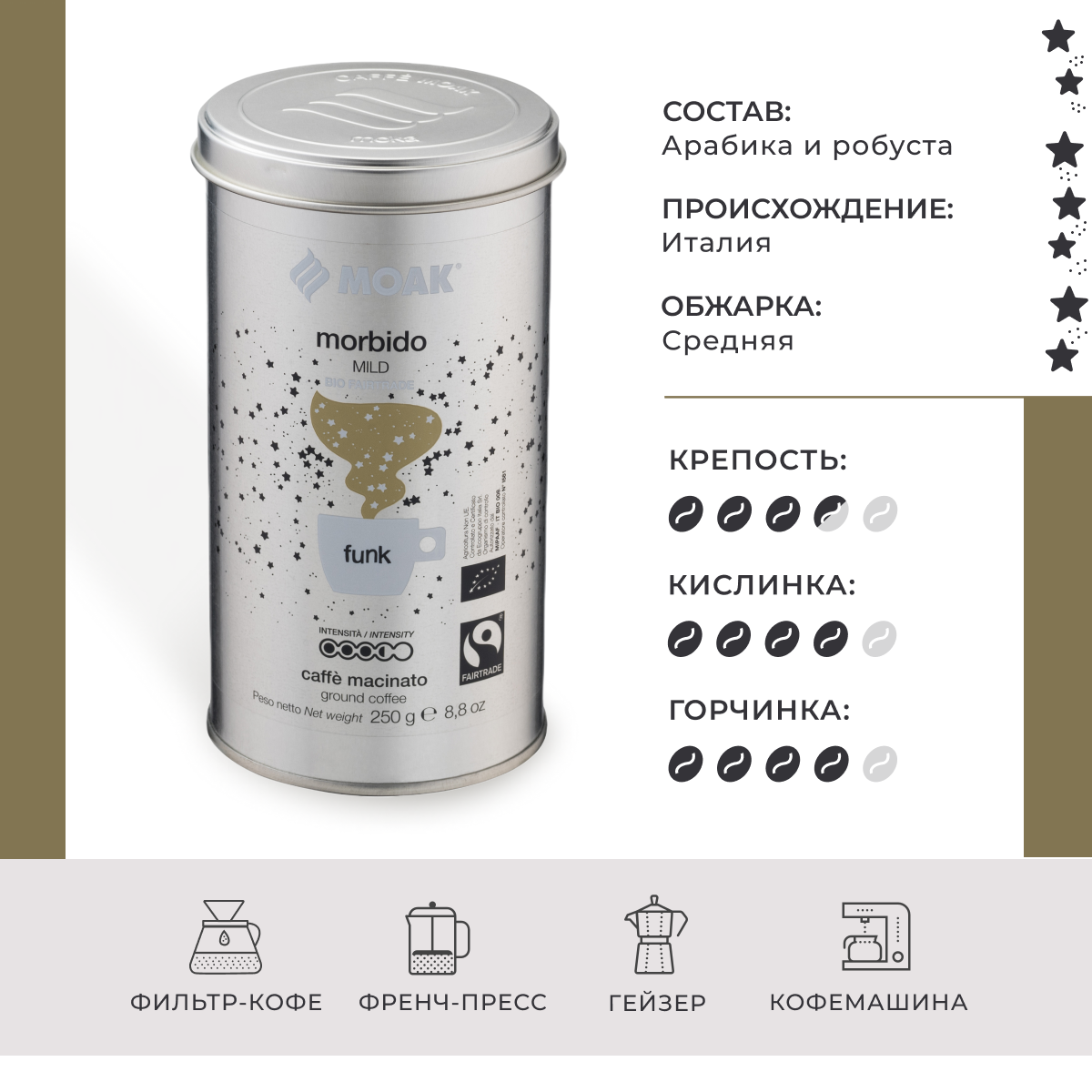 Кофе молотый Moak Morbido Funk, 250 гр. (ж.б.) информация: