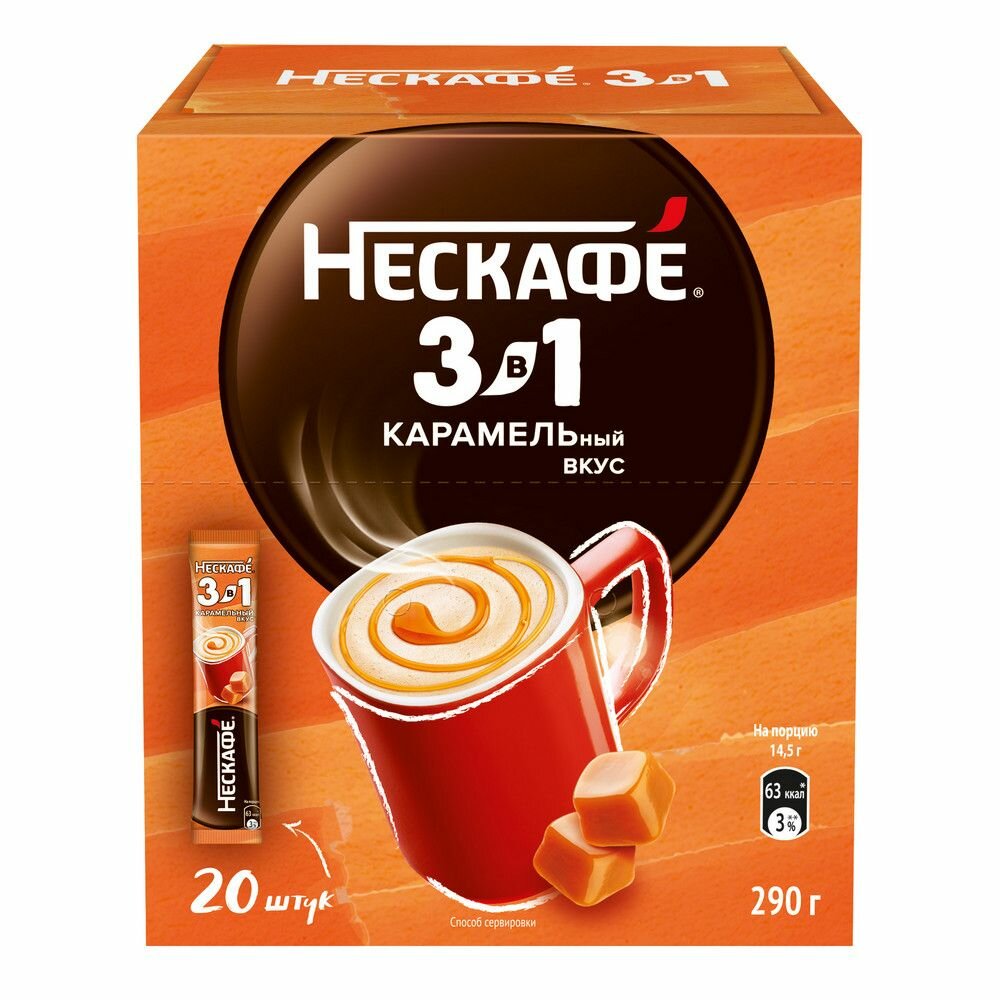 10 цен на Кофе 3в1 карамельный вкус "Нескафе" 20 стиков