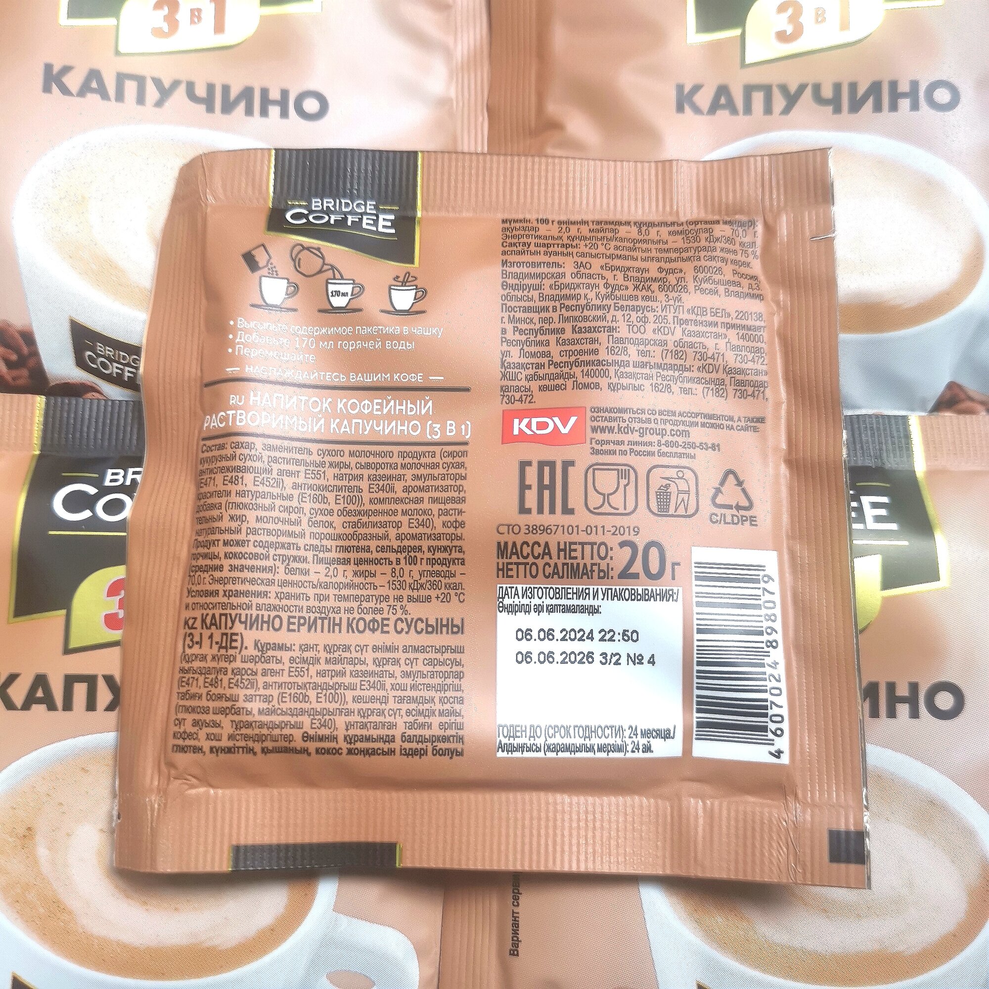 «Bridge Coffee», напиток кофейный 3 в 1 Капучино, 20 г (упаковка 40 шт.) информация:
