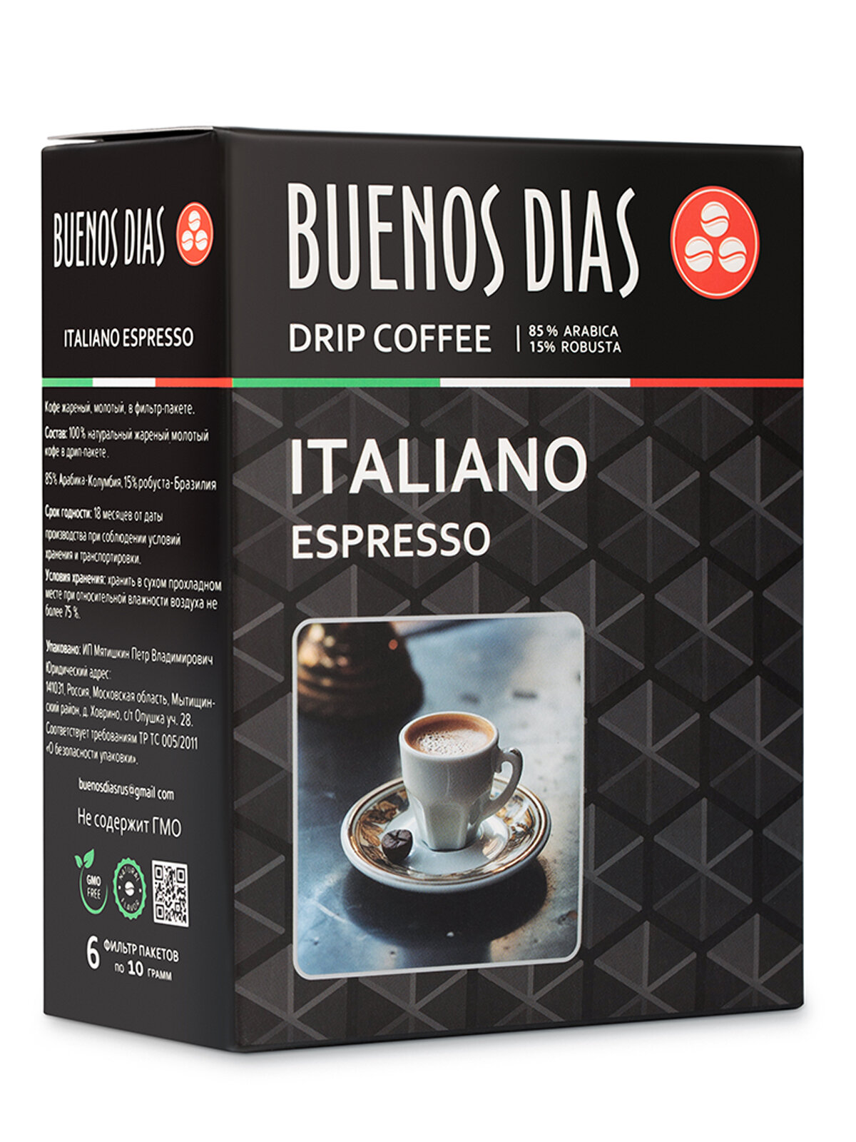 Дрип кофе Buenos Dias ITALIANO ESPRESSO 6шт*10гр Кофе молотый в дрип пакетах информация: