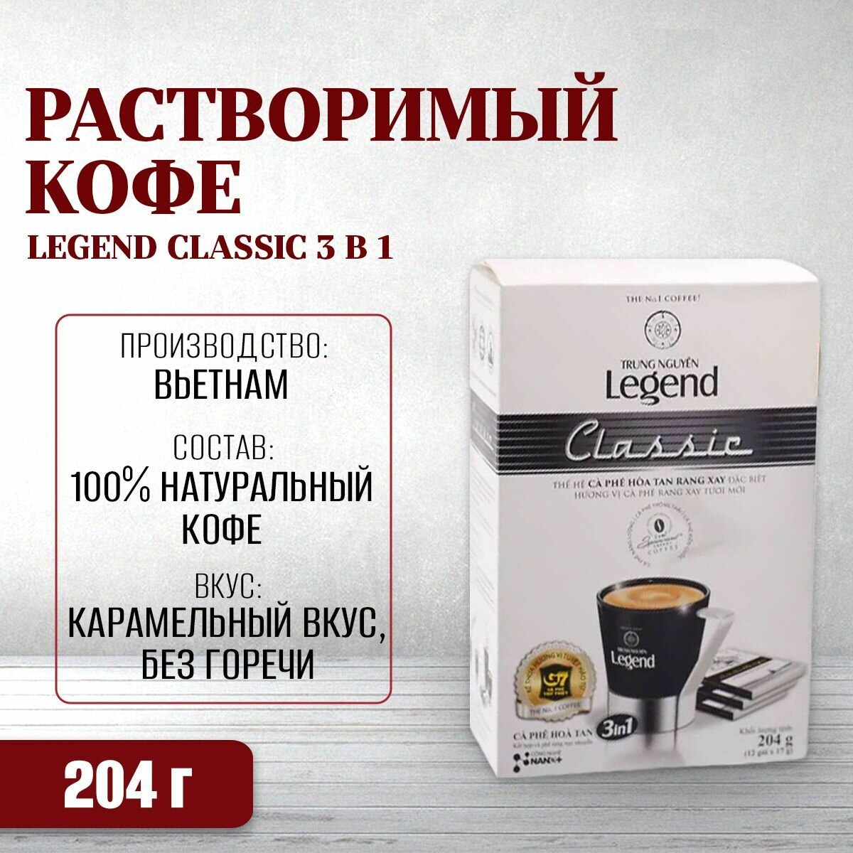 Растворимый кофе Legend Classic 3 в 1 (G7) Trung Nguyen, 12 пак информация: