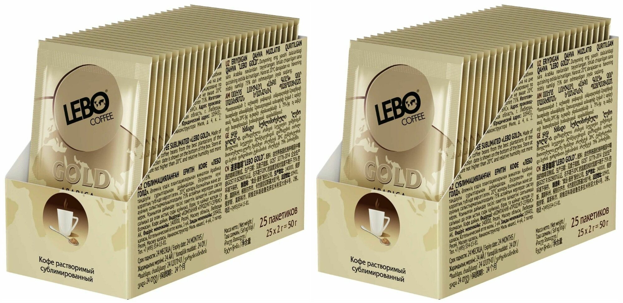 Lebo Кофе растворимый Gold, 25 пакетиков по 2 г, 2 уп информация: