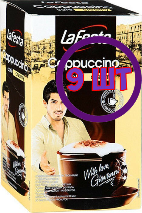 10 цен на Кофе LA FESTA Cappuccino Сливочный 10 пак.* 12,5 гр (комплект 9 шт.) 0000945