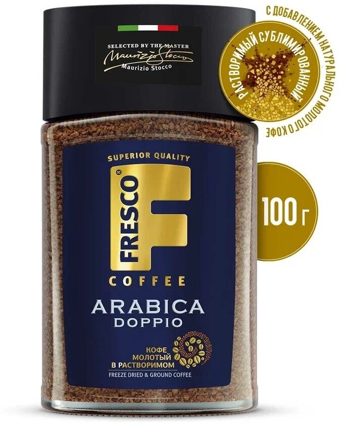 Кофе растворимый Fresco Arabica Doppio с добавлением молотого, стеклянная банка, 100 г