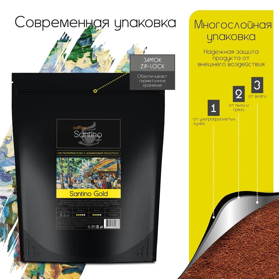 Кофе растворимый 500гр с добавлением натурального жареного молотого кофе Santino Gold информация: