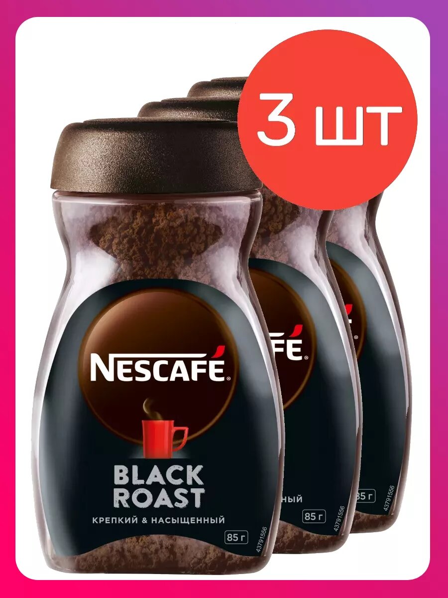 Кофе Nescafe, Black Roast растворимый, гранулированный, стеклянная банка, 85 г