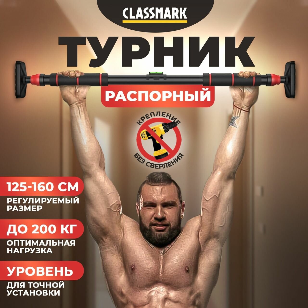Турник распорный в дверной проем без сверления, 125-160 см Classmark раздвижной, домашняя перекладина для подтягивания, максимальная нагрузка до 200 кг, с уровнем информация: