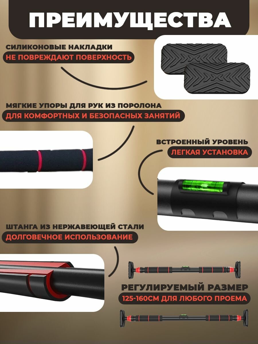 10 цен на Турник распорный в дверной проем без сверления, 125-160 см Classmark раздвижной, домашняя перекладина для подтягивания, максимальная нагрузка до 200 кг, с уровнем