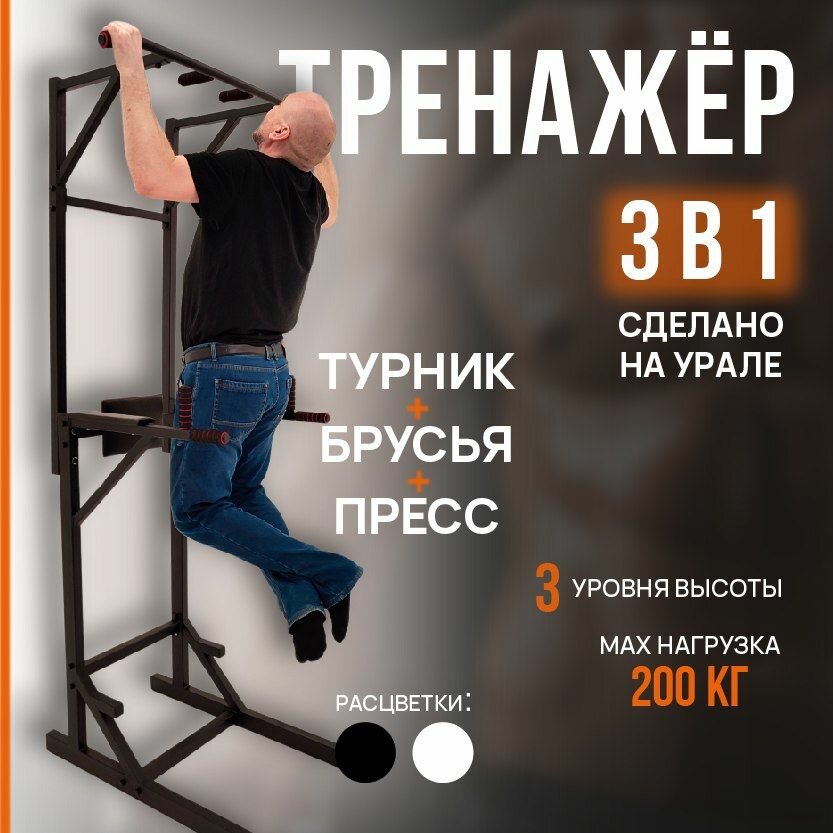 Турник напольный 3 в 1 для спорта и фитнеса дома, мультихват, турник+брусья+пресс черный информация: