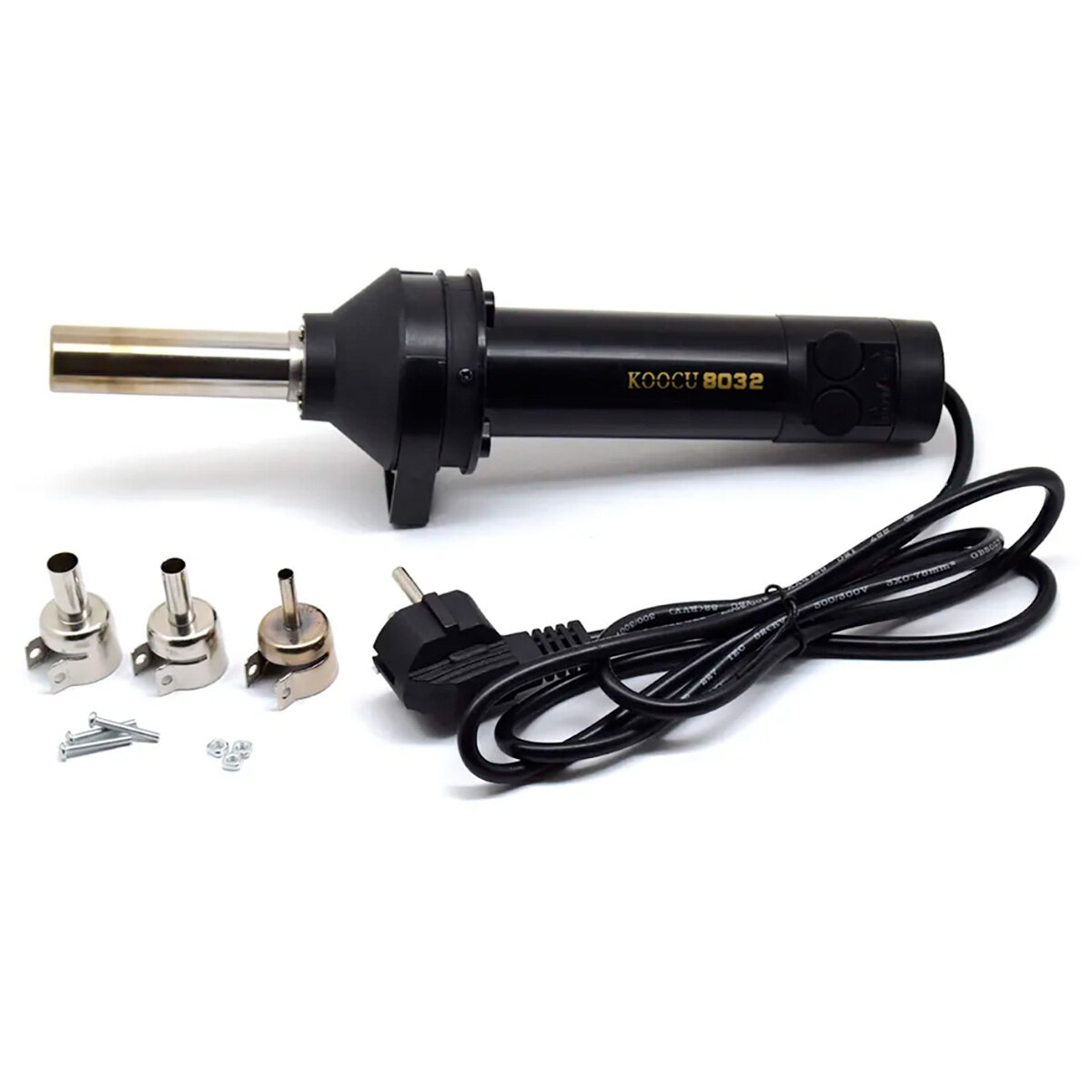 | Комплектация | Паяльный фен: 1 шт. Насадка 5 мм: 1 шт. Насадка 8 мм: 1 шт. Насадка 10 мм: 1 шт. |