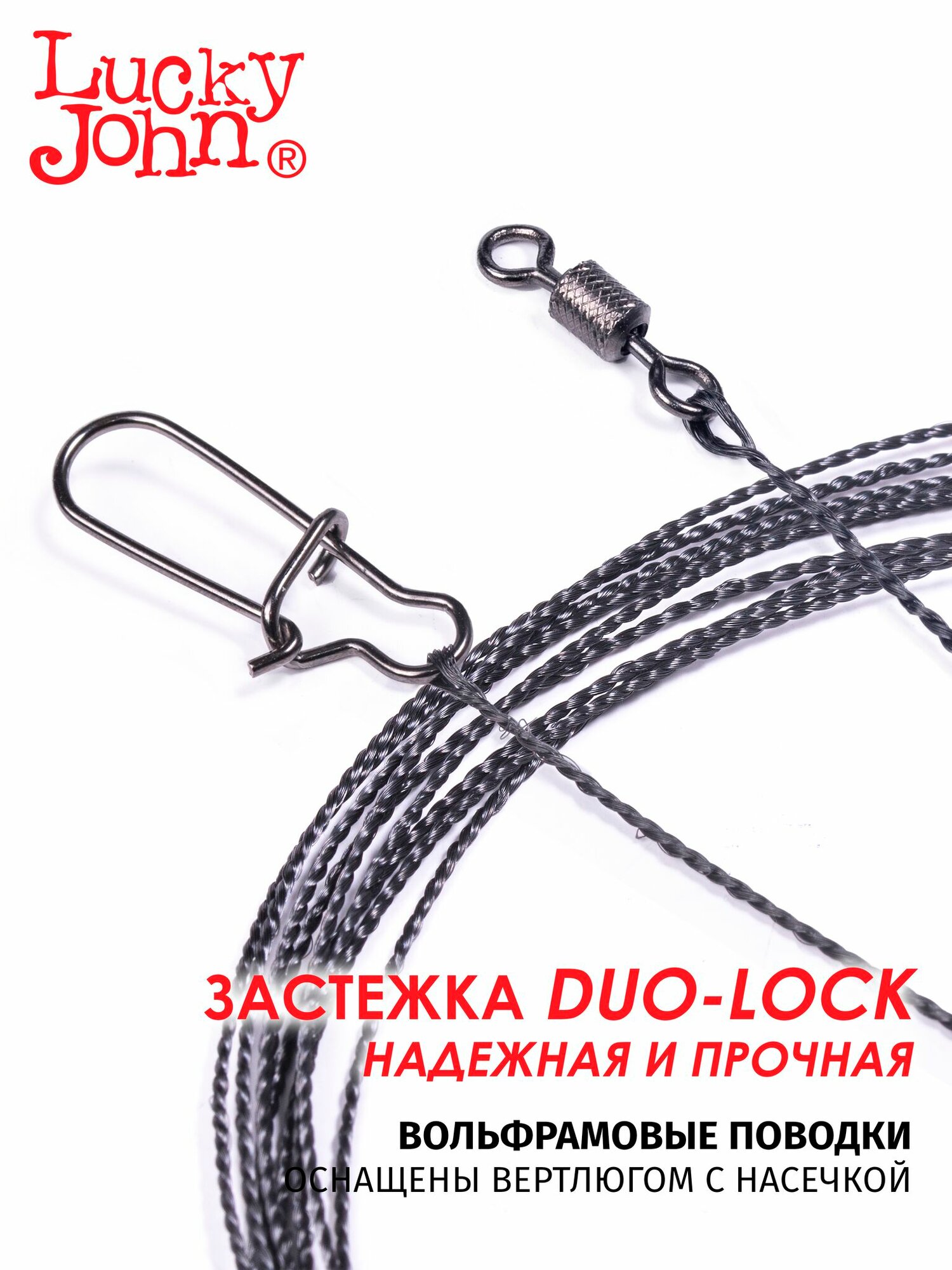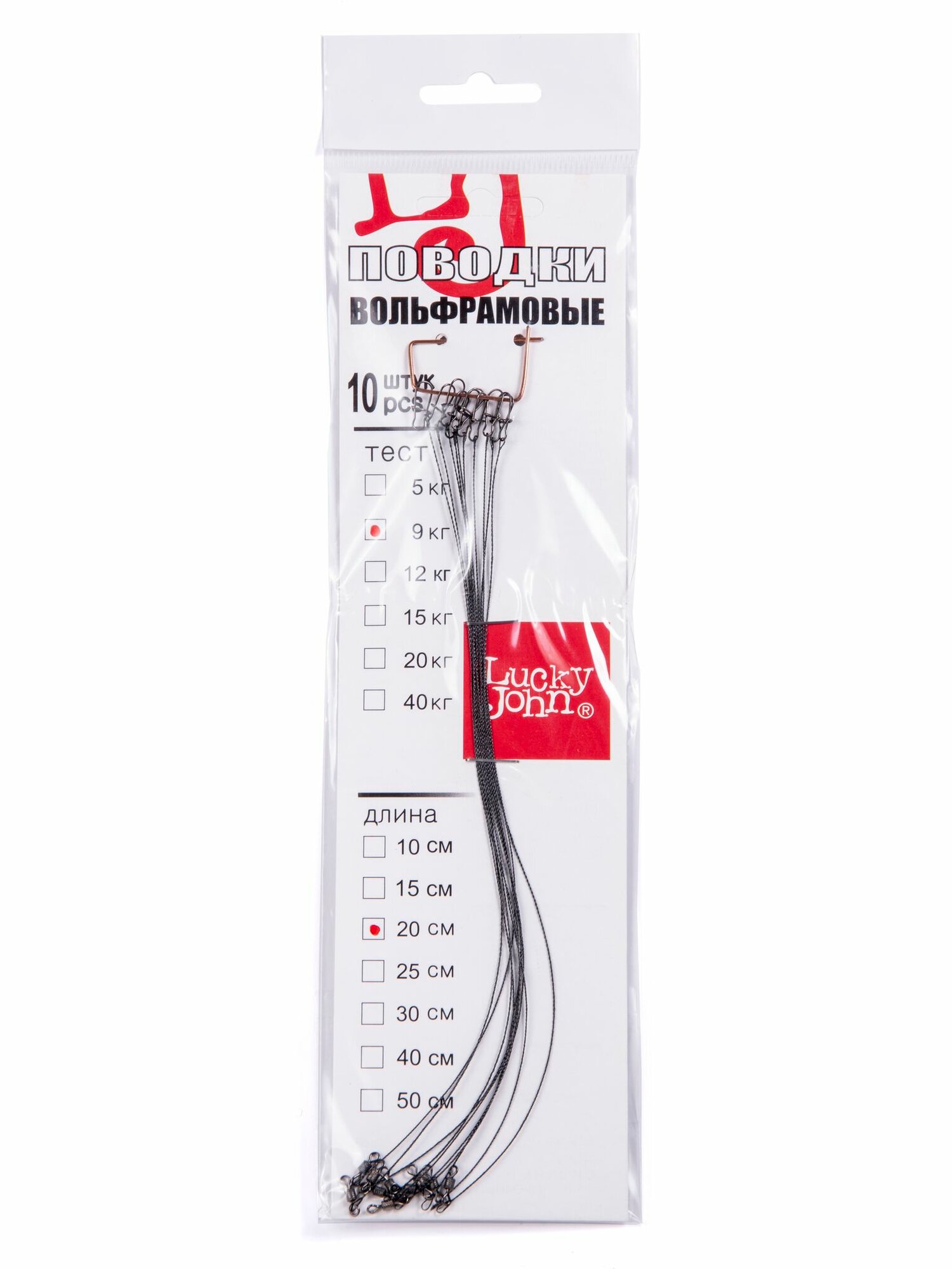 Поводки вольфрамовые Lucky John с вертлюгом и застежкой 9 кг 20 см 10 шт. информация: