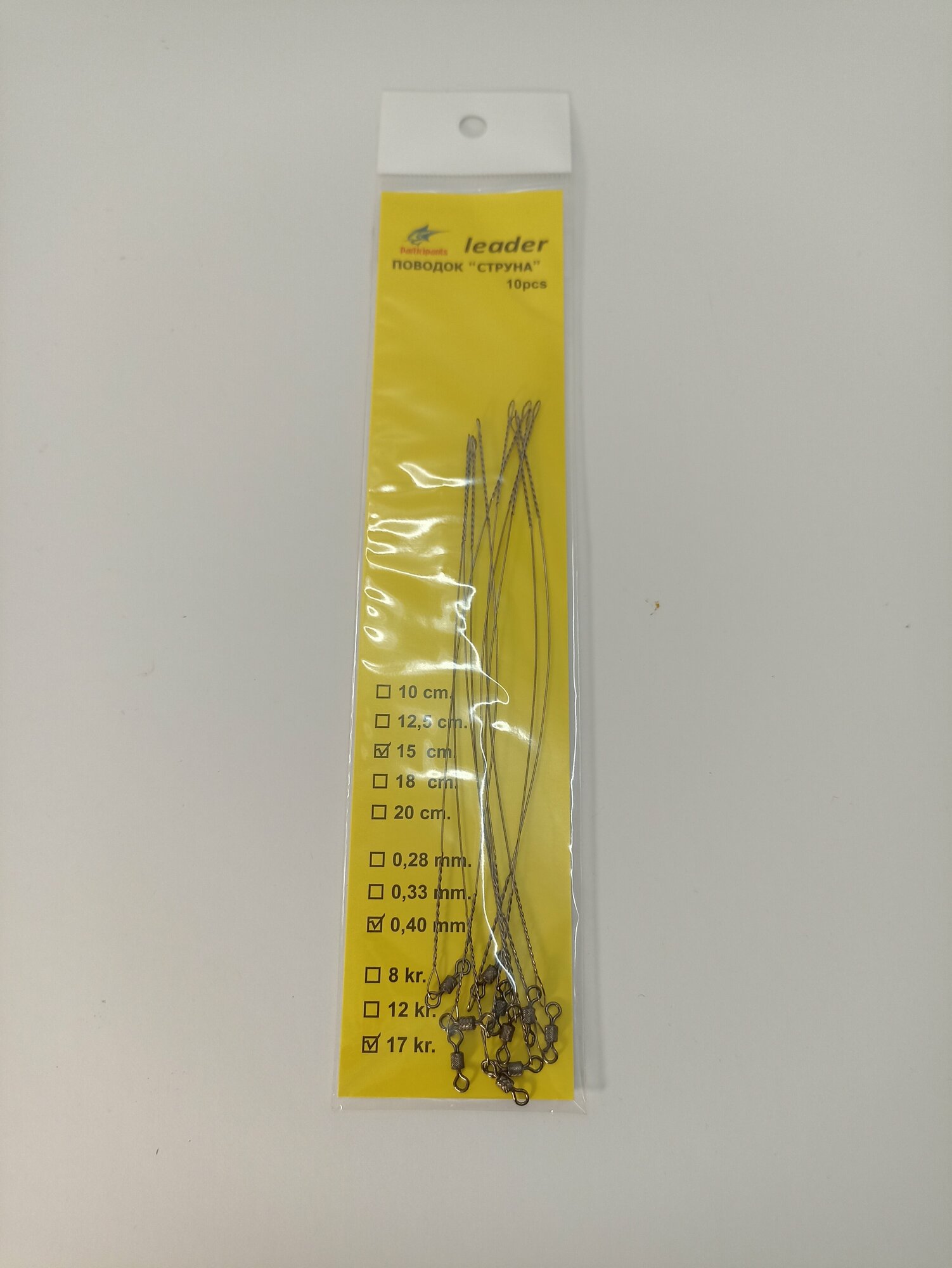 Поводок рыболовный "Струна" с вертлюжком 15 см, 0,4 мм, 17 кг 10 шт информация: