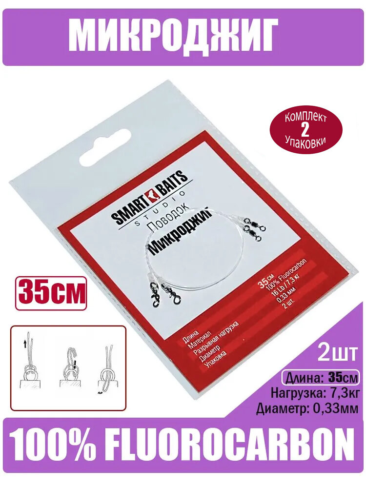 Поводок Микроджиг 35см Флюорокарбон 2шт/уп 2 уп Smart Baits Studio, снасть Лайт Ультралайт для джига, спиннинг снасть для рыбалки информация: