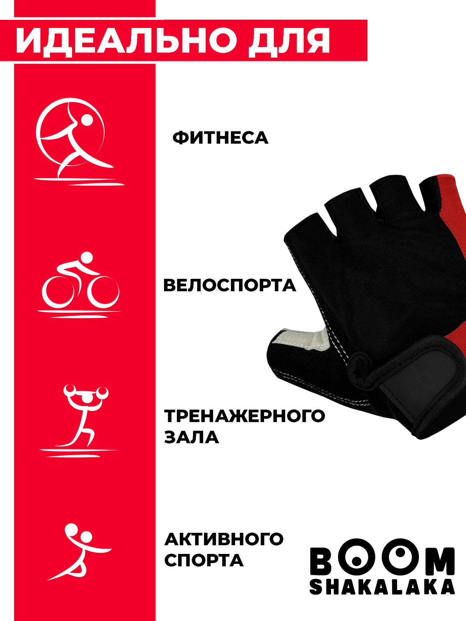 Перчатки для фитнеса Boomshakalaka, цвет черно-серо-красный, размер M, обхват ладони 190-210 мм. 529 ₽