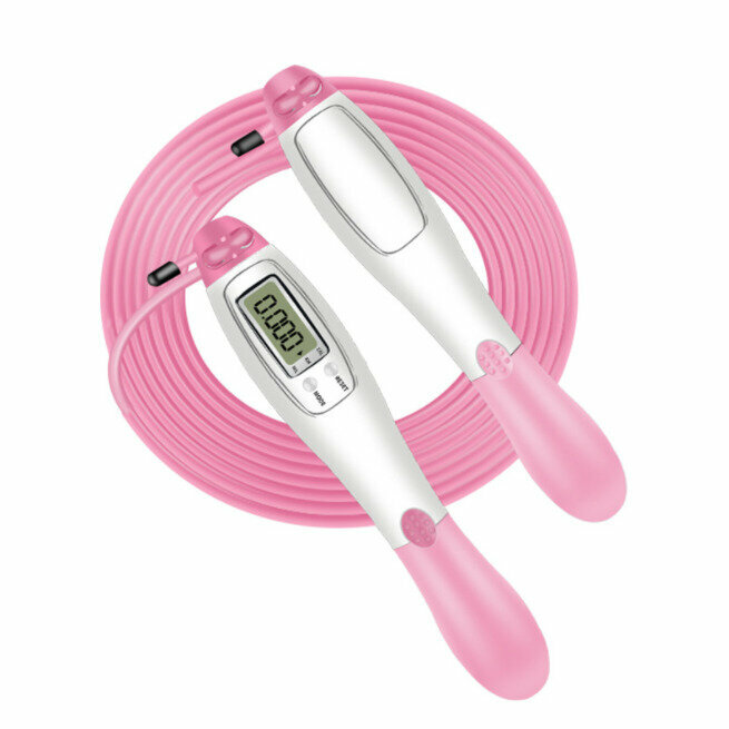 Скакалка для фитнеса со счетчиком прыжеков комбинированная, розовая информация: