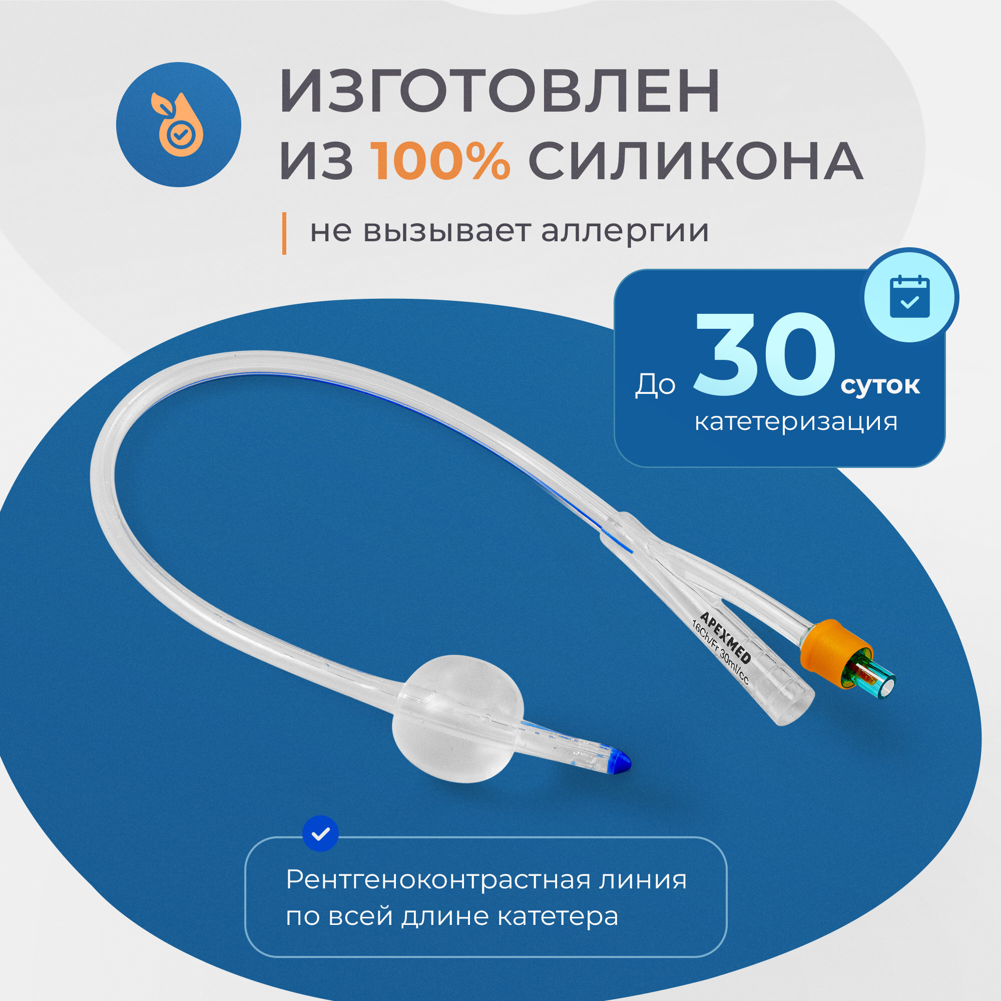 10 цен на Катетер урологический Фолея мужской двухходовой силиконовый, Ch/Fr 16, Apexmed