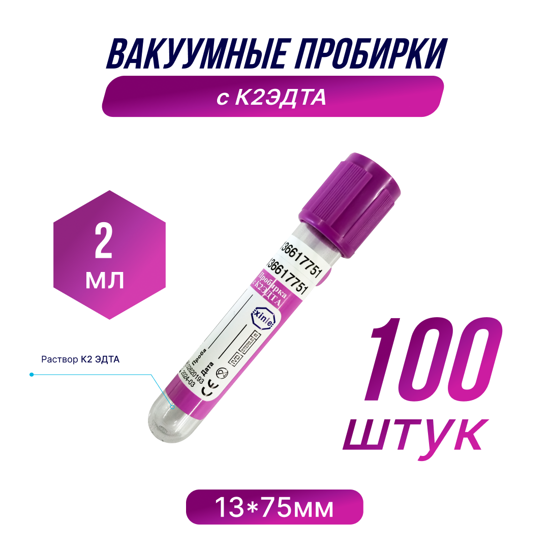 Пробирки с К2 эдта, 2 мл, 13х75 мм, 1 упаковка, 100 штук информация: