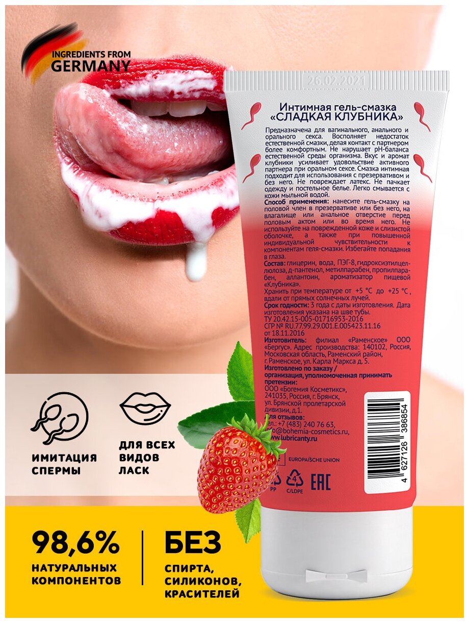 Съедобная гель-смазка имитация спермы интимная со вкусом Клубника лубрикант на водной основе для секса, 50 мл