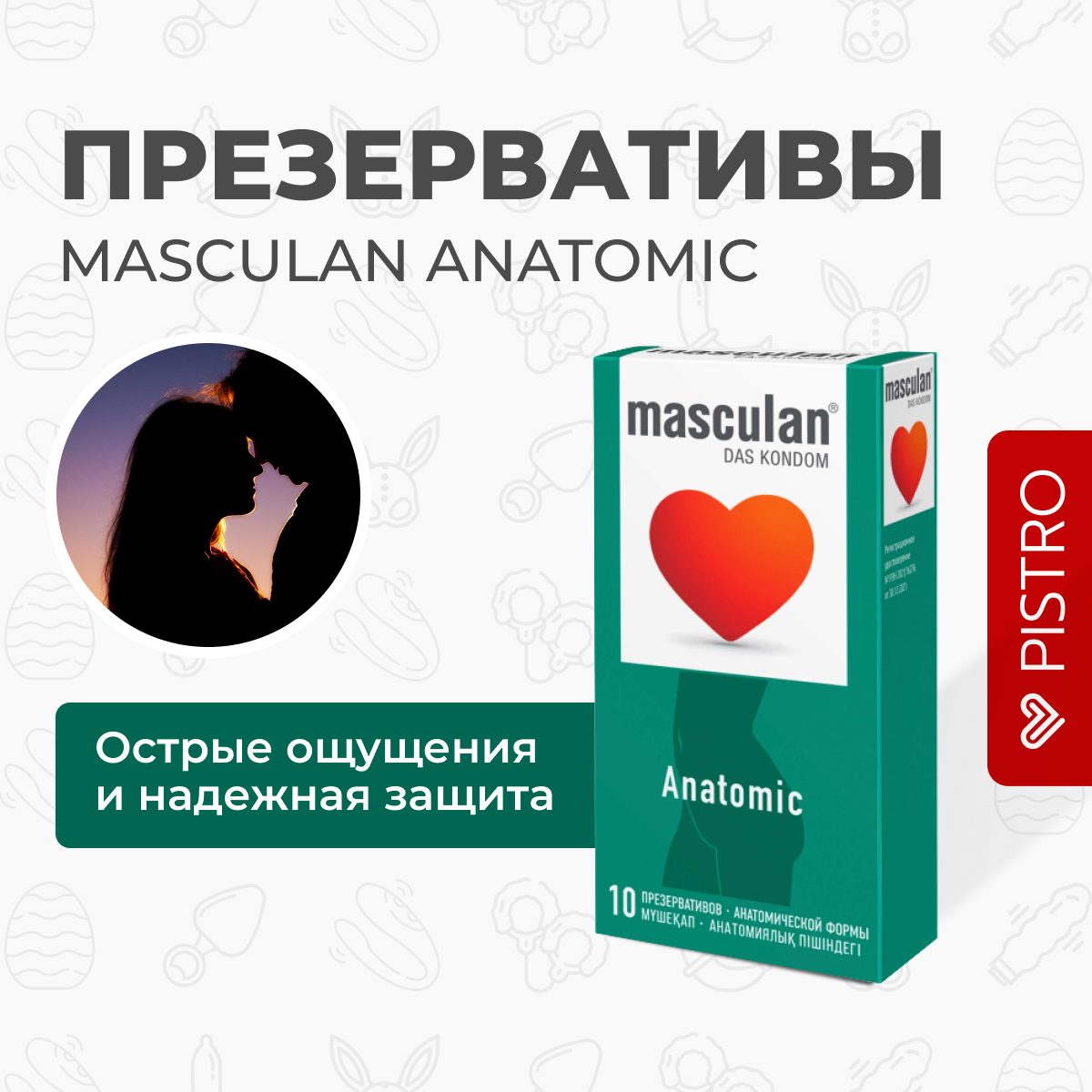 | Дополнительная информация | Адаптация к форме полового члена за счет анатомической формы презерватива |
