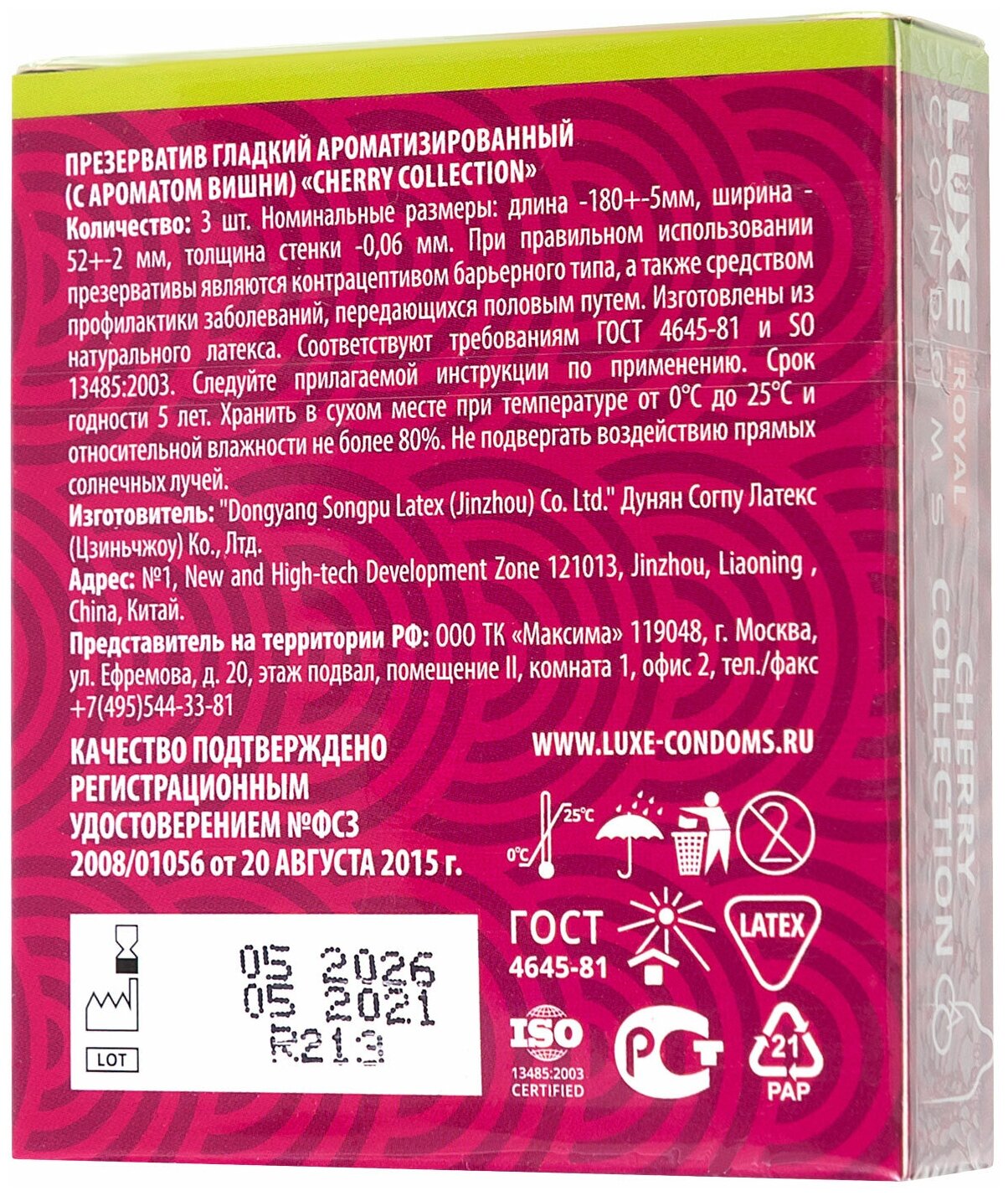 Презервативы Luxe ROYAL CHERRY Collection 3 шт информация: