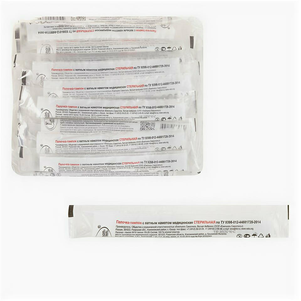 10 цен на Зонд-тампон пластик/хлопок намотка 10 мм стерильный емельянъ савостинъ, индивидуальная упаковка длина 150 мм (цена за 100 ед.товара)