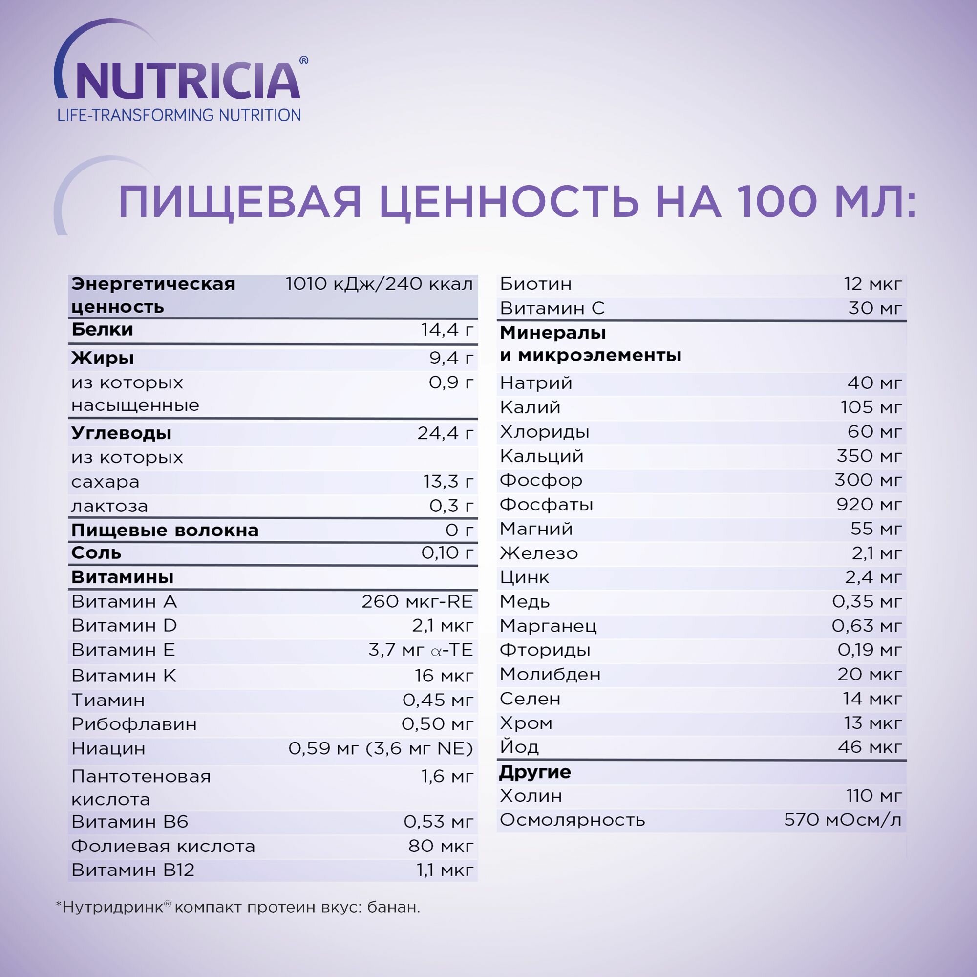 Нутридринк Компакт Протеин Nutricia Compact Protein со вкусом банана / 125 мл. х 2 шт. информация: