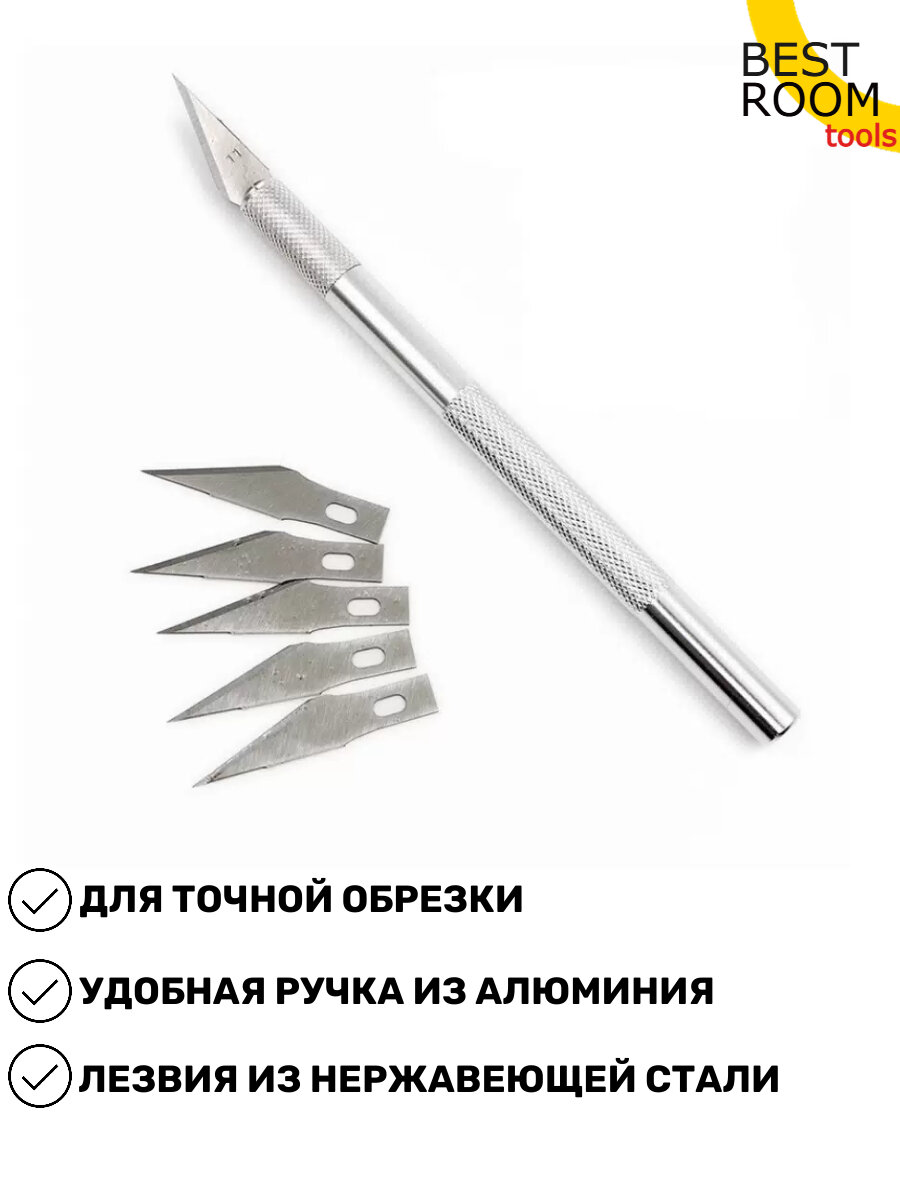 Перовой нож KNB KNB-AG6, 6 профильных лезвий, для карвинга, для резки по бумаге, тонкому пластику