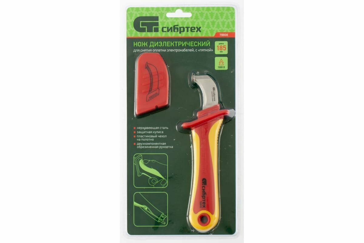 Нож диэлектрический с пяткой до 1000 В, для снятия оплетки электрокабелей Сибртех 78808
