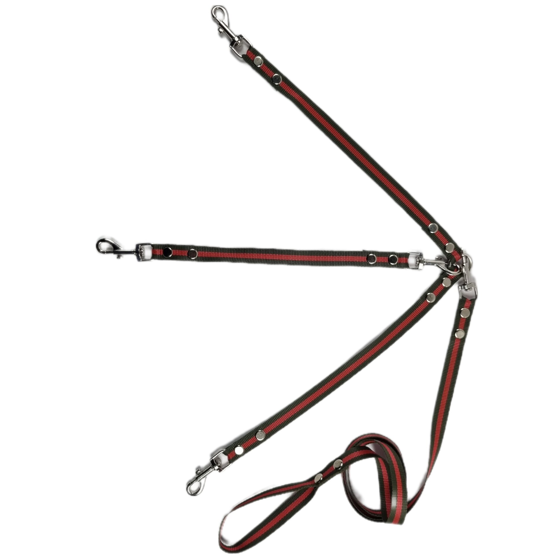 Поводок 1,5 м + сворка для двух собак средних пород нейлон 70 см х 20см (Зелено-красный) 717 ₽