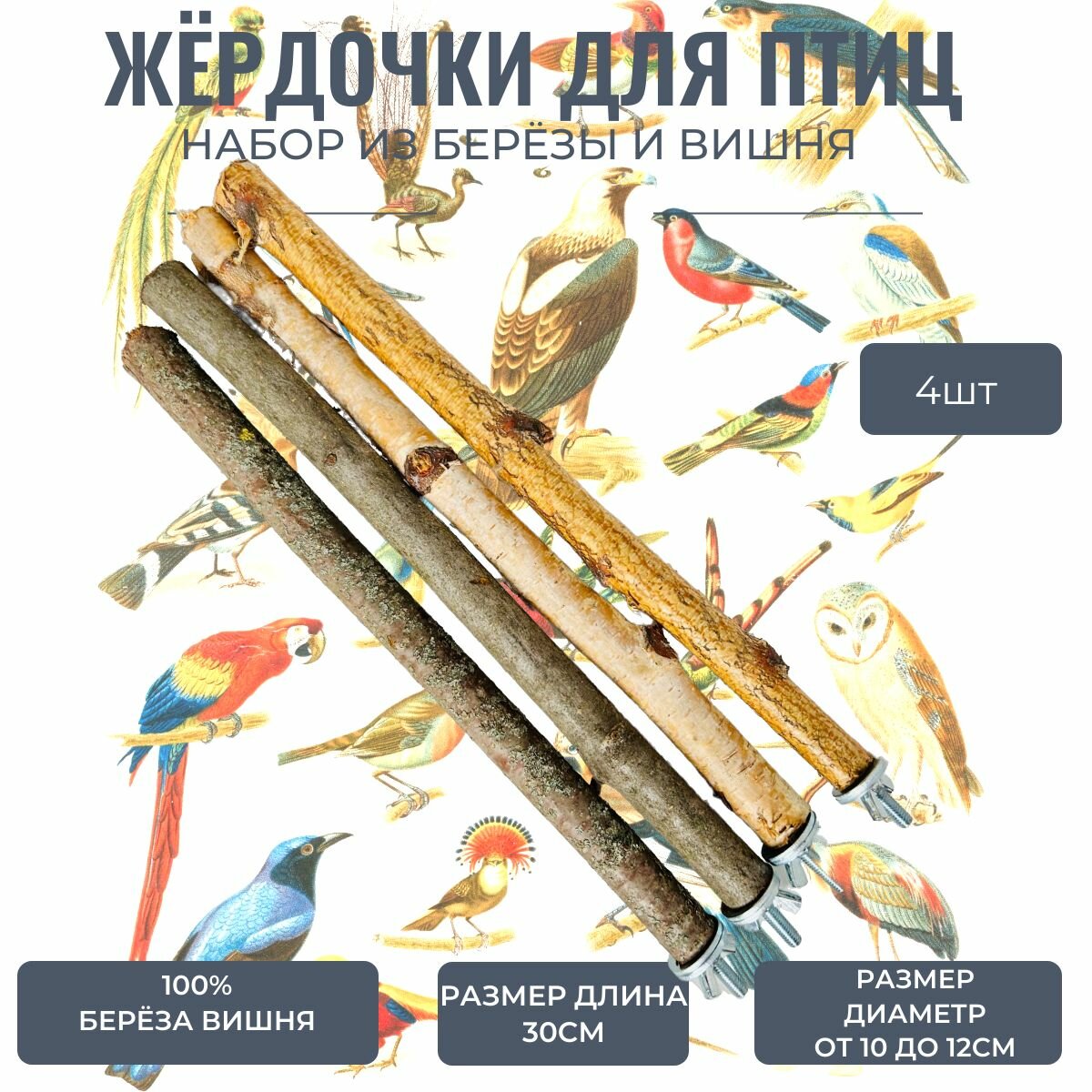 10 цен на Жердочки для попугаев и птиц (комплект из 4 штук ) по 30 сантиметров берёза,вишня