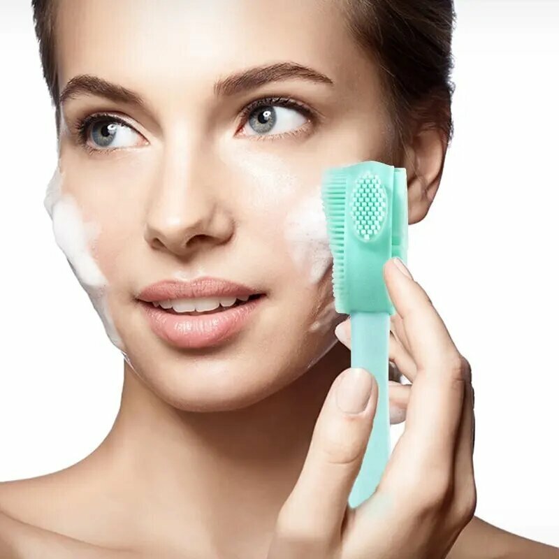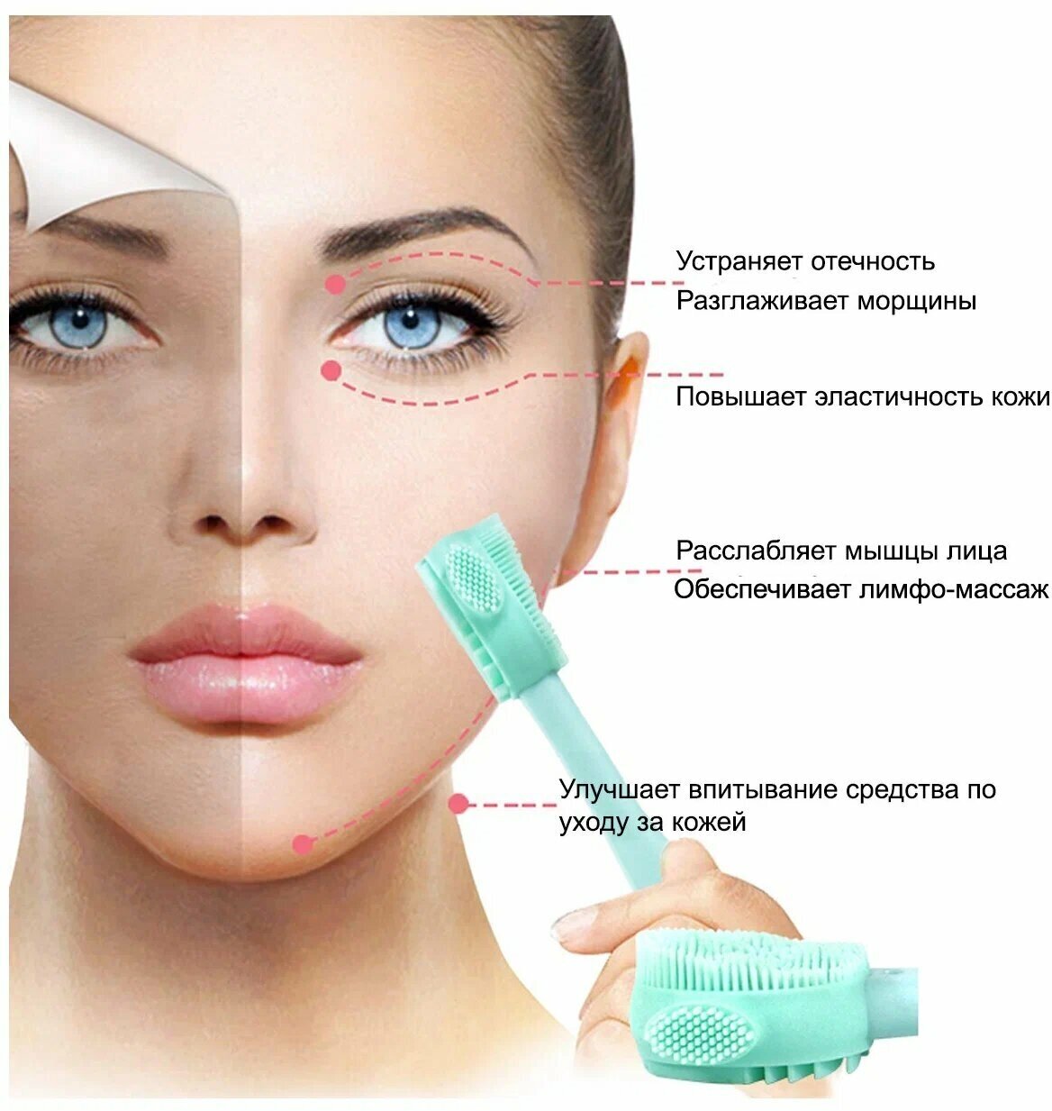 10 цен на Щеточка для умывания и чистки лица, нанесения масок, для массажа голубая