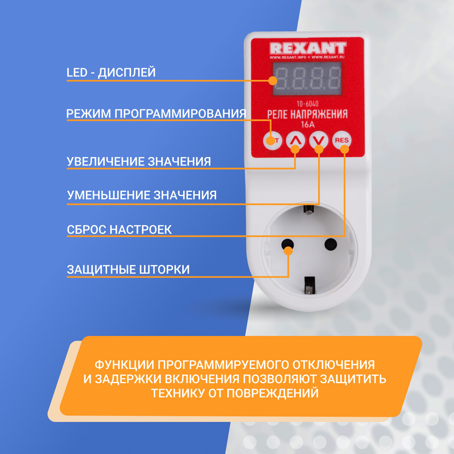 Реле напряжения вилка-розетка c дисплеем 16А REXANT информация: