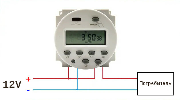 Универсальный недельный программируемый таймер переключатель 12В DC Sinotimer TM618H-4