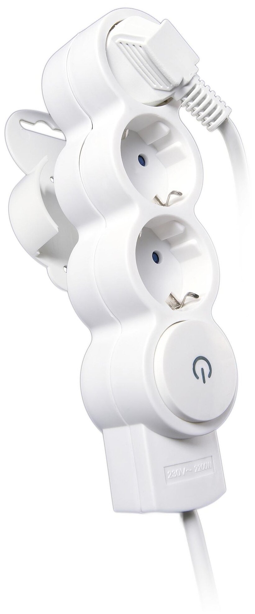 duwi Удлинитель Duwi, 3 розетки, 2 м, 10 А, 2200 Вт, ПВС 3х0.75 мм2, с з/к, с выключателем, белый