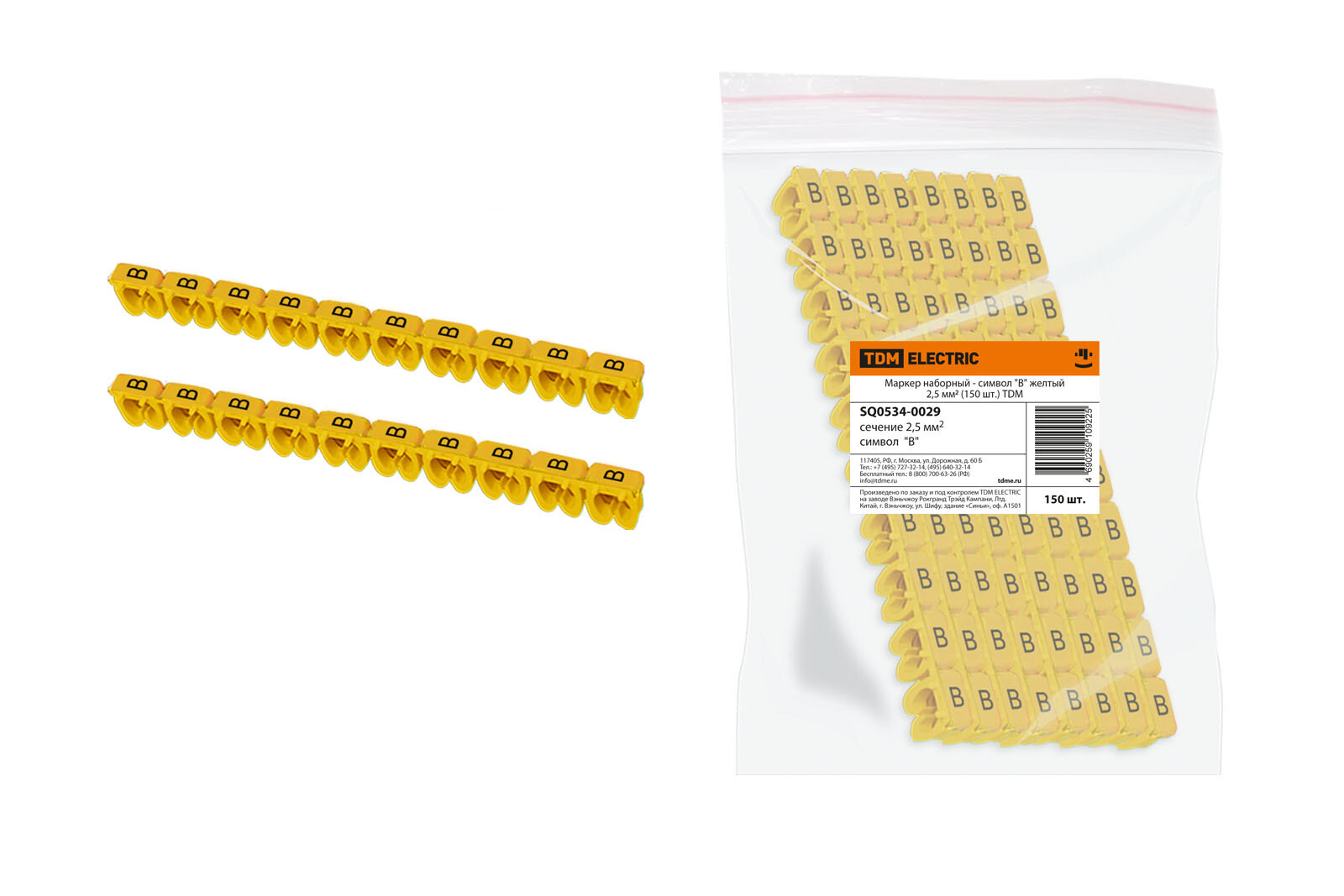 Маркер наборный - символ "B" желтый 2,5 мм2 (150 шт.) TDM Electric (SQ0534-0029)
