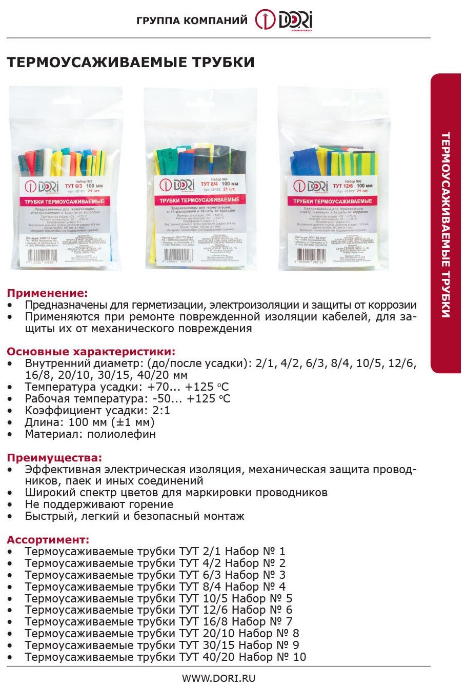 Набор термоусаживаемых трубок DORI ТУТ 40/20