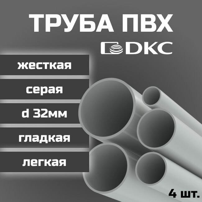 Труба ПВХ DKC гладкая жесткая легкая d32мм серая L1000 4шт. информация: