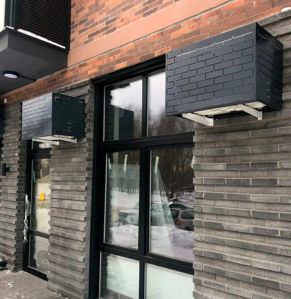 Отзывы на Корзина / короб для наружного блока кондиционера на фасад с кронштейнами, 900х600х550мм черный (RAL 9005), перфорация -ромб-