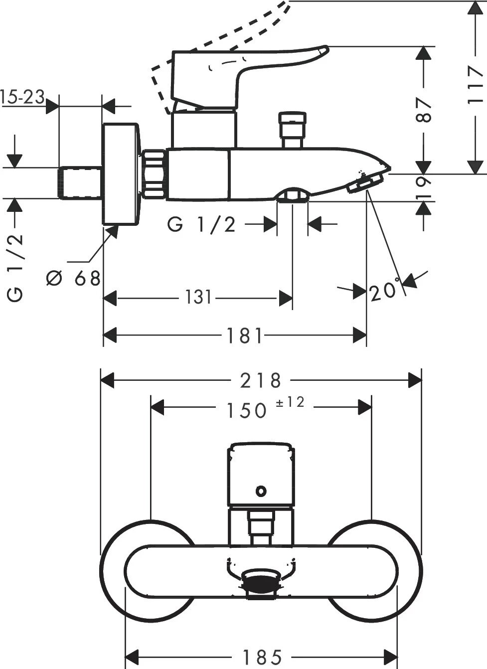 Смеситель Hansgrohe Metris 31480000 для ванны/душа настенный, однозахватный 31 363 ₽
