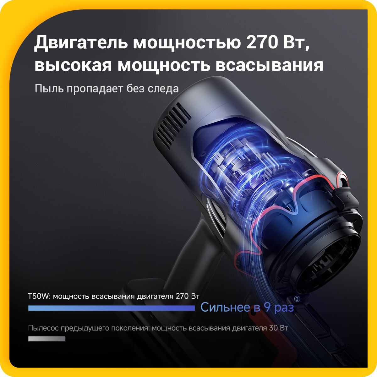 Пылесос для дома вертикальный беспроводной Deerma T50W для сухой уборки с контейнером информация: