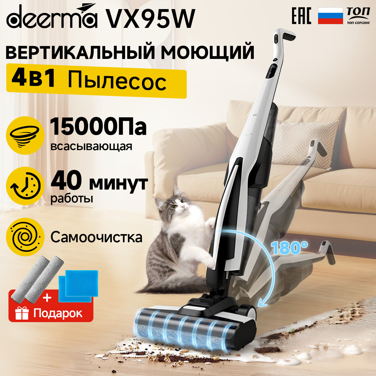 10 цен на Вертикальный моющий пылесос Deerma VX95W(ЕАС-сертификат), для сухой и влажной уборки со станцией самоочистки