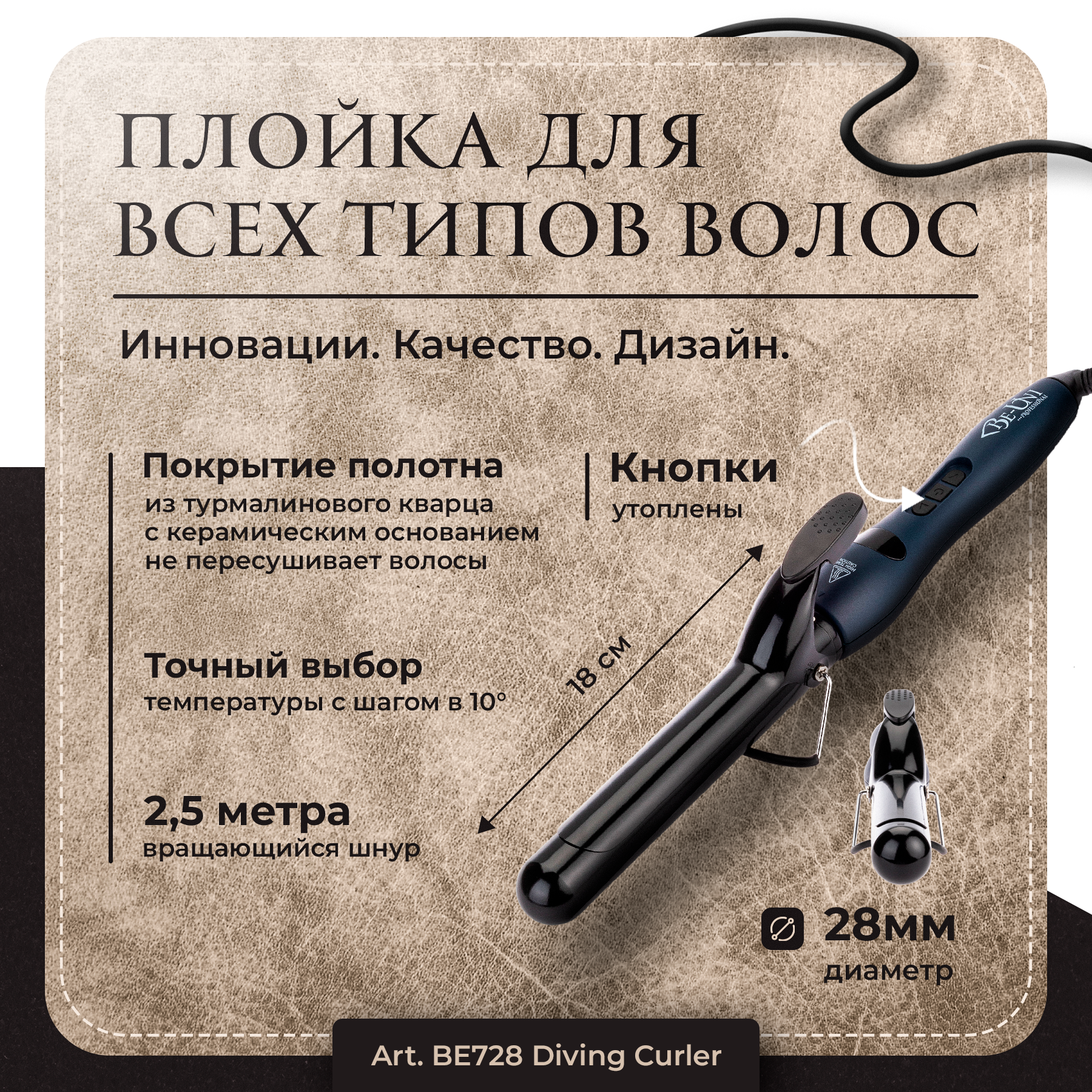 Плойка для завивки волос Дайвинг с покрытием турмалиновый кварц, 28 мм информация: