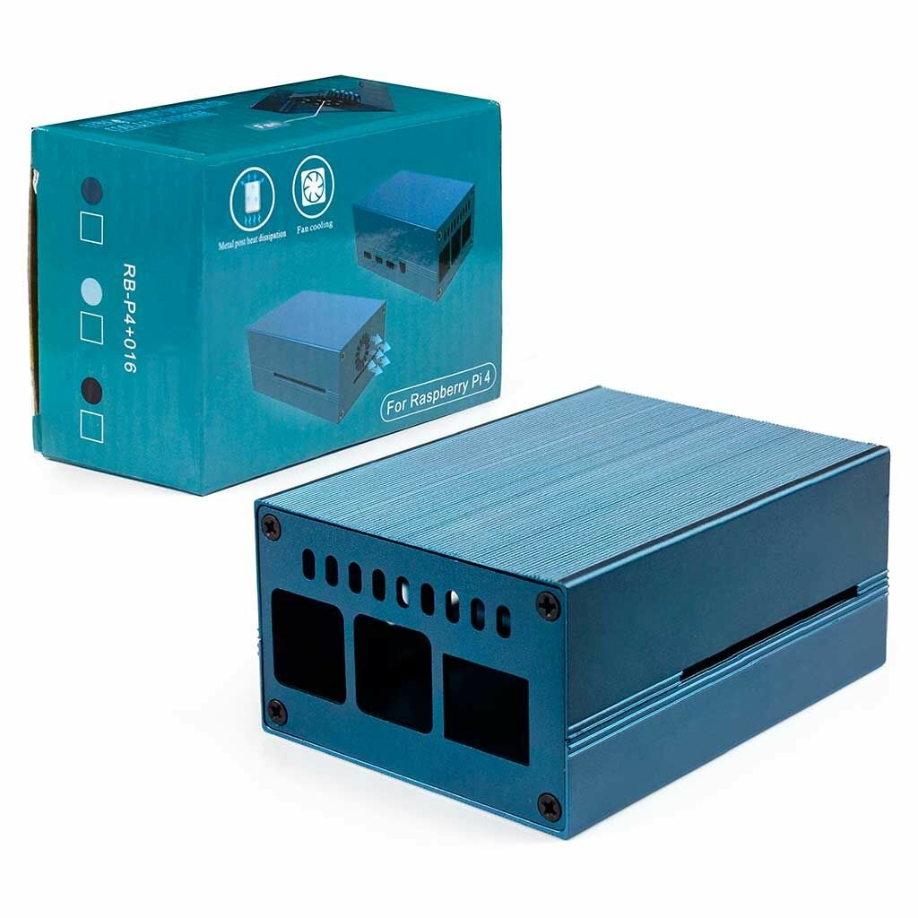 10 цен на Корпус алюминиевый для Raspberry Pi 4 синий с вентилятором