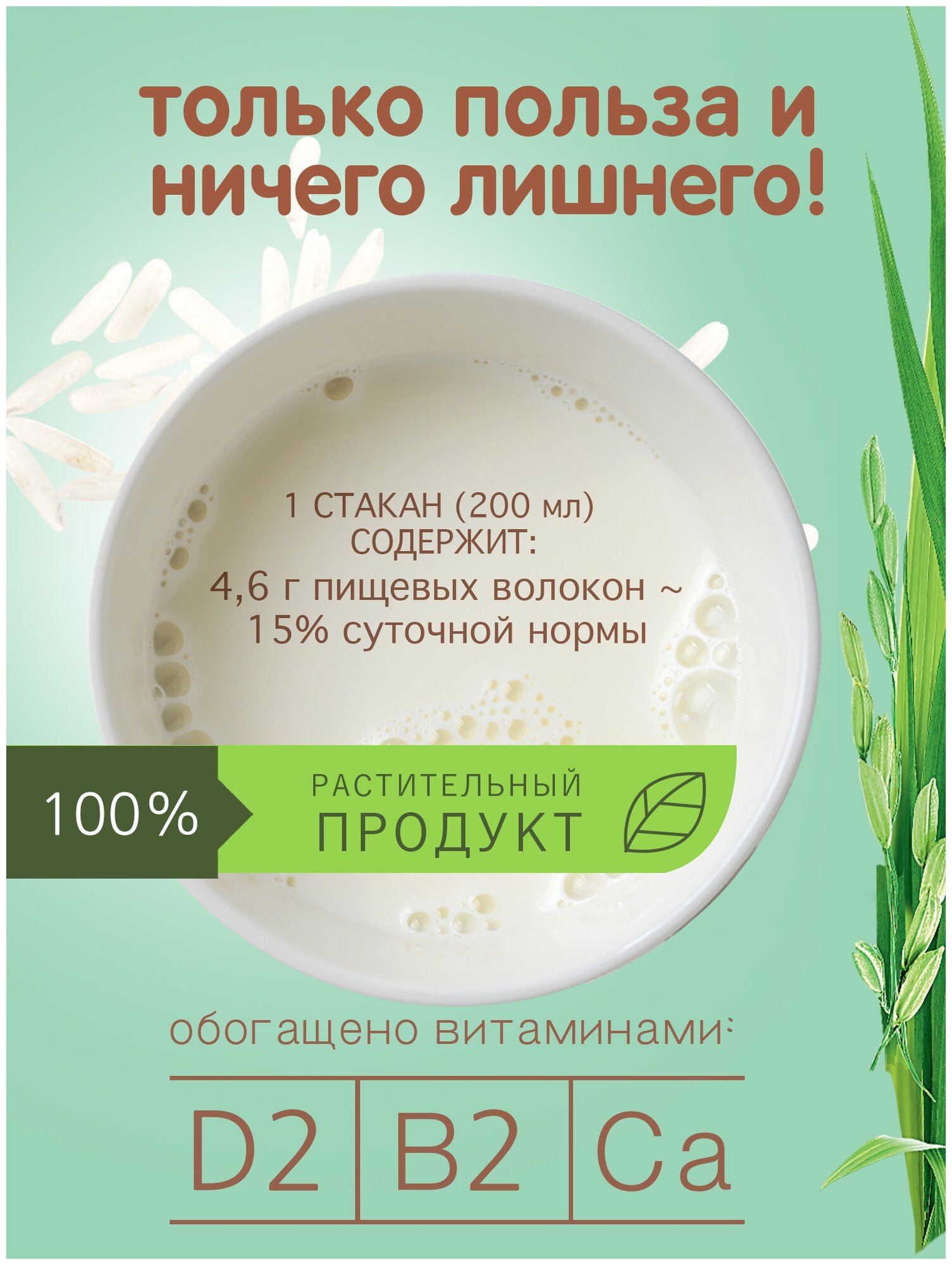 | Состав | Вода, рисовая мука, рапсовое масло, витаминно-минеральный премикс (витамин D2, витамин В2 (рибофлавин), кальций (трикальций фосфат), кальция карбонат), соль. |