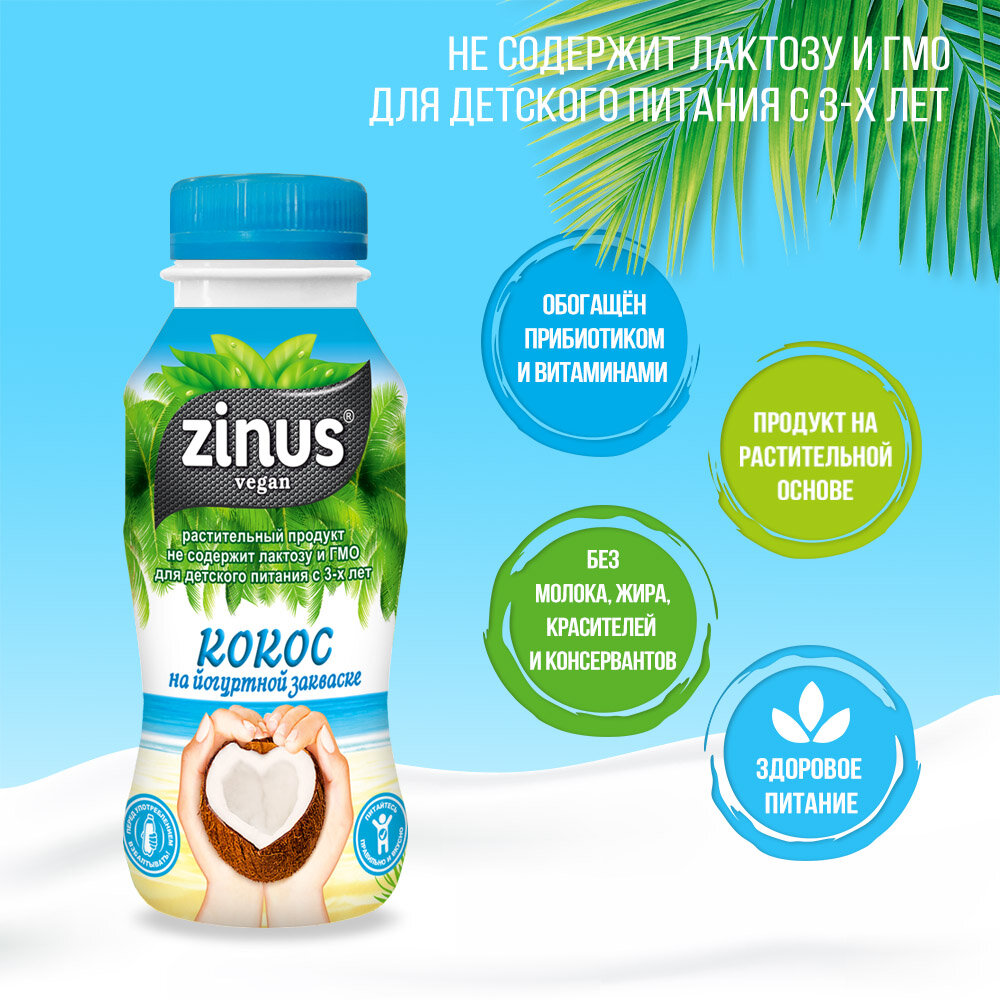 10 цен на Zinus Кокосовый напиток на йогуртной закваске, без молока, обогащенный пребиотиками и витаминами, ТМ ZINUS 250г ПЭТ/6шт