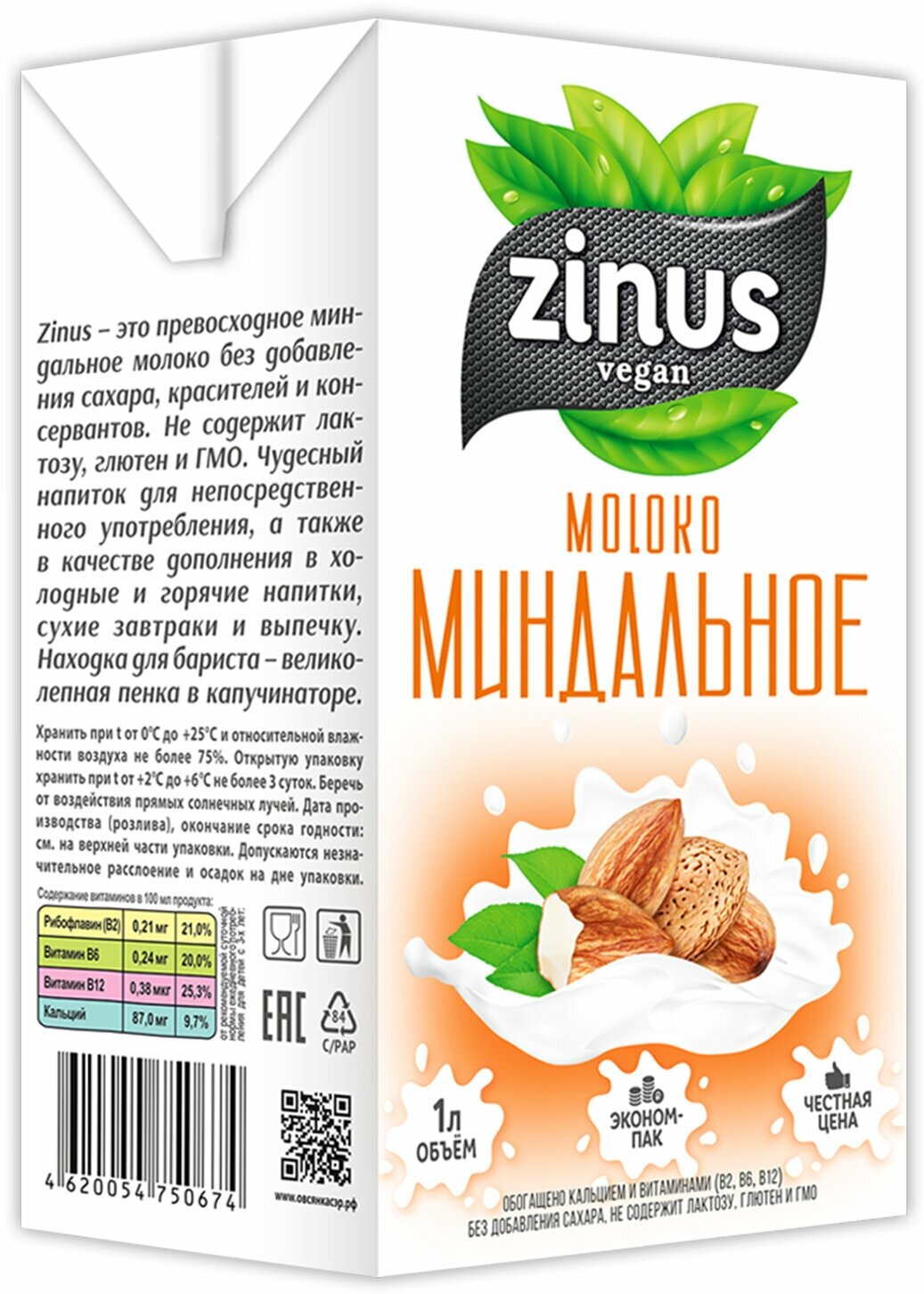 Молоко миндальное "ZINUS" 1 л (3 шт. в наборе) информация: