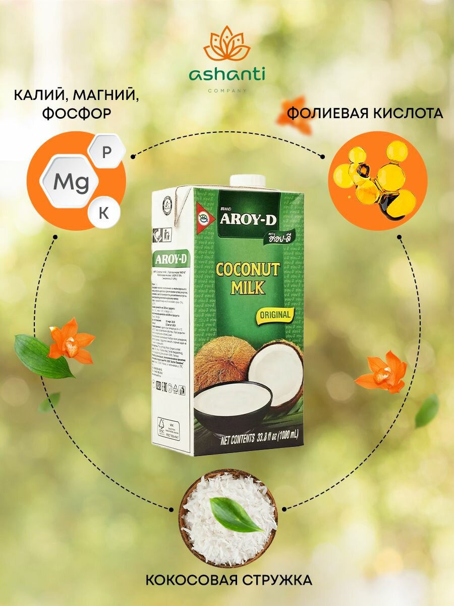 Кокосовое растительное молоко Aroy-D без сахара, заменитель молока, натуральное, 1л информация: