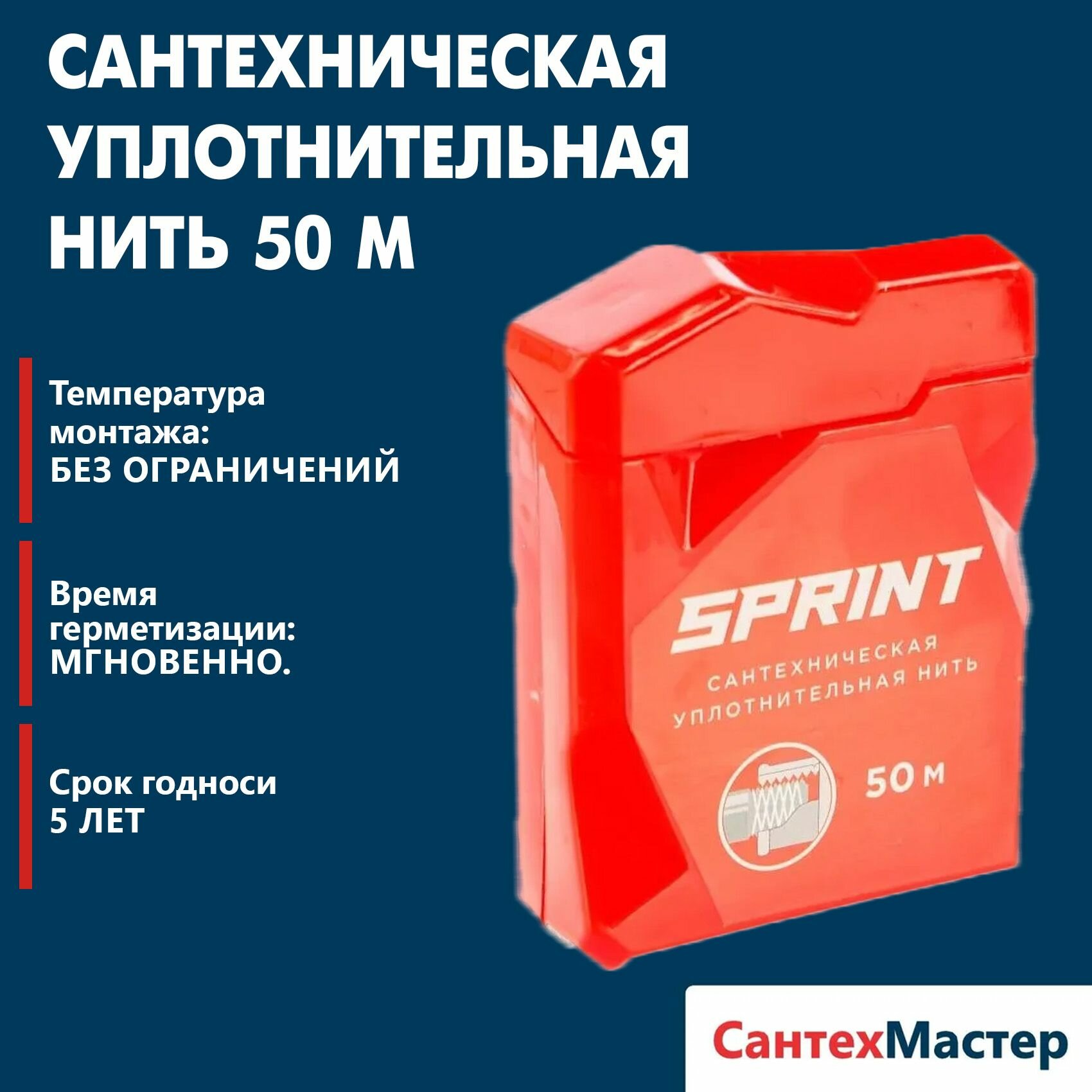 Сантехническая уплотнительная нить SPRINT 50 м, в блистере информация: