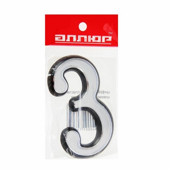 Цифра дверная аллюр большая пластик "3" хром информация: